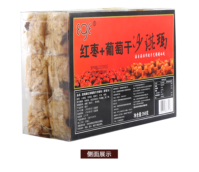 小麥粉、苦蕎粉、葡萄干、紅棗、雞蛋、麥芽糖醇、棕櫚油、食品添加劑(焦磷酸二氫二鈉,碳酸氫鈉,磷酸二氫鈣)、食用鹽