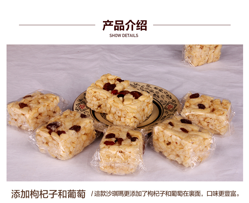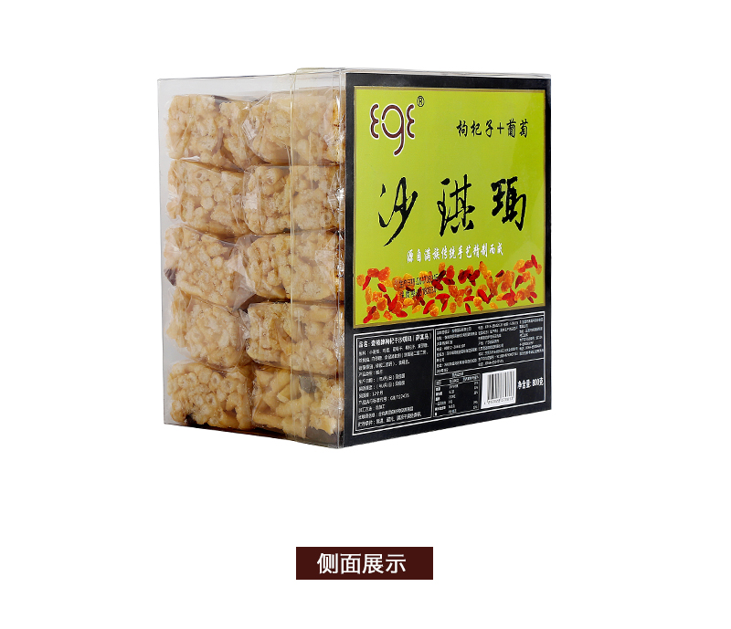 小麥粉、雞蛋、葡萄干、枸杞子、麥芽糖、棕櫚油、白砂糖、食品添加劑(焦磷酸二氫二鈉,碳酸氫鈉,磷酸二氫鈣)、食用鹽