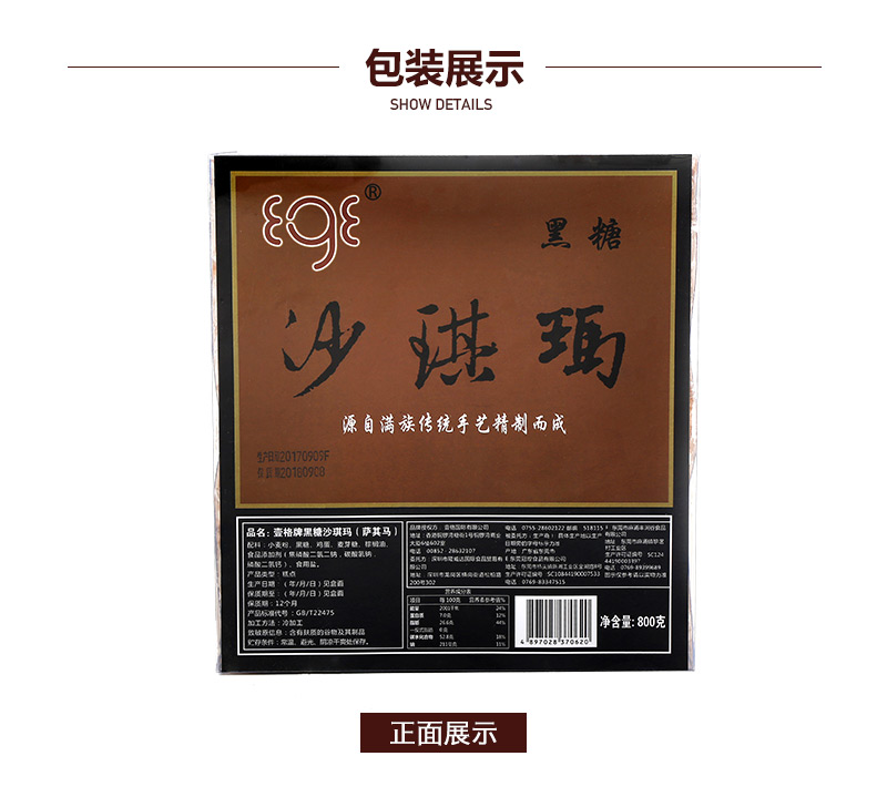 小麥粉、黑糖、雞蛋、麥芽糖、棕櫚油、食品添加劑(焦磷酸二氫二鈉,碳酸氫鈉,磷酸二氫鈣)、食用鹽